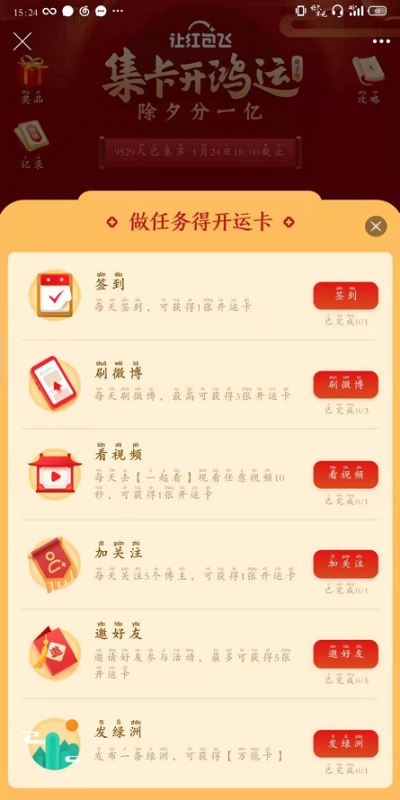 以上便是脚本之家小编为大家分享的"微博集卡开鸿运活动开运卡怎么得 集卡开鸿运活动开运卡获得方法"的全部内容,希望能够帮到你,脚本之家 持续发布更多资讯,欢迎大家的关注。