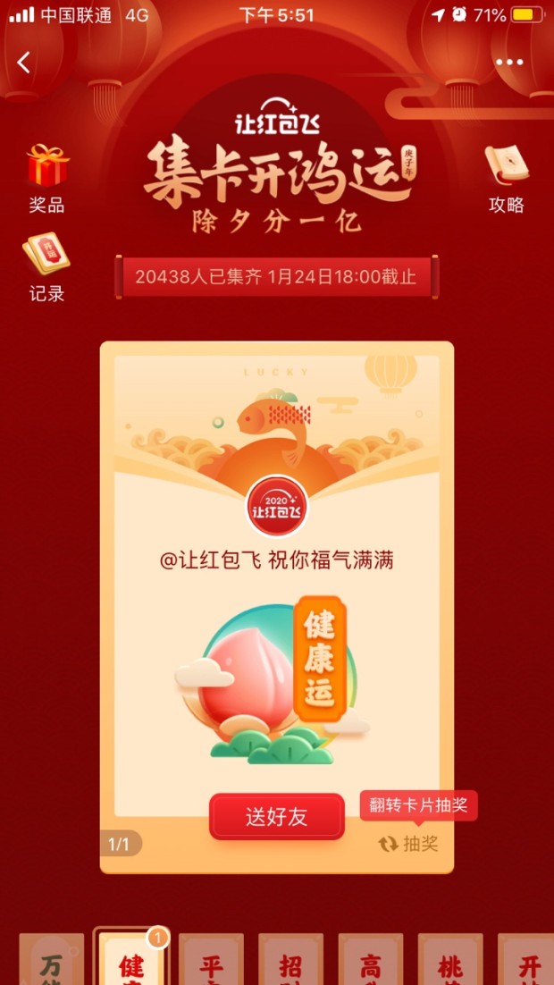 2、然后就可以进入“集卡开鸿运”活动界面了哦!