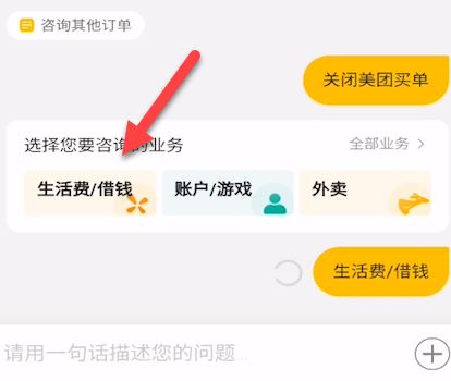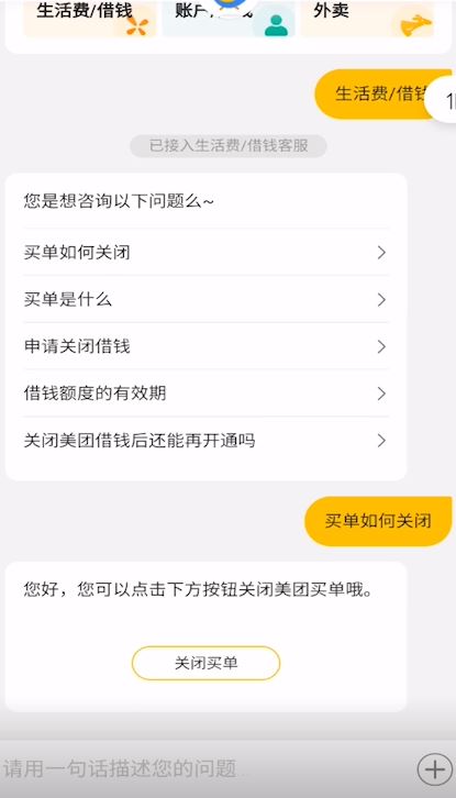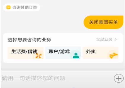 2、在对话框输入“关闭美团买单”并发送。