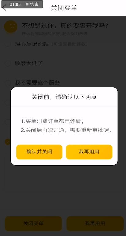 5、点击确认关闭买单即可。