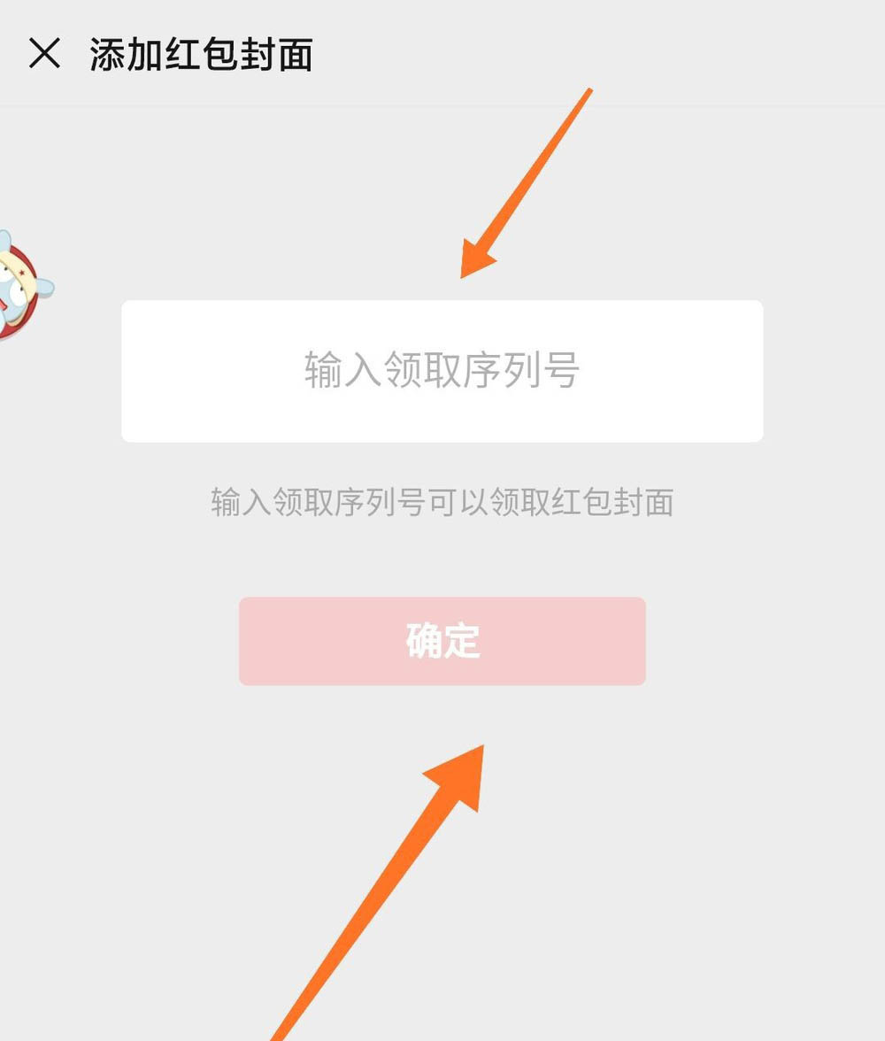 6、来到添加红包封面的页面,我们输入序列号,再点击确定即可。