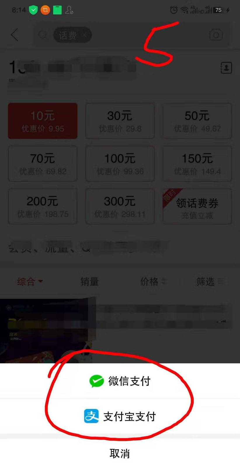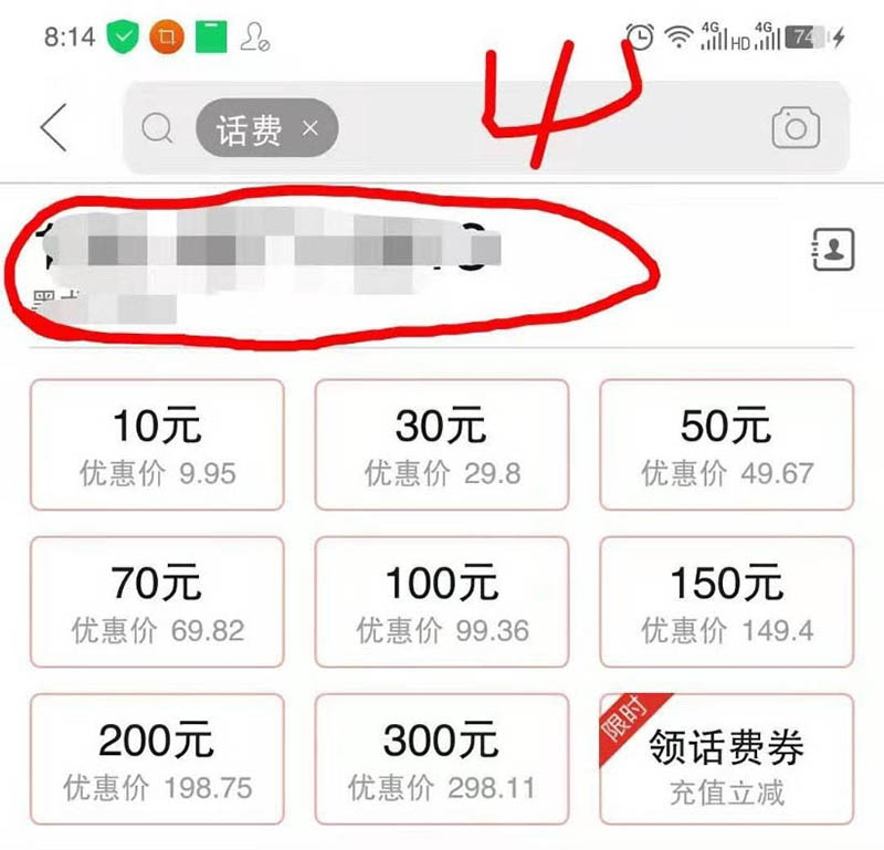4、在搜索框下面输入要充值的手机号码。