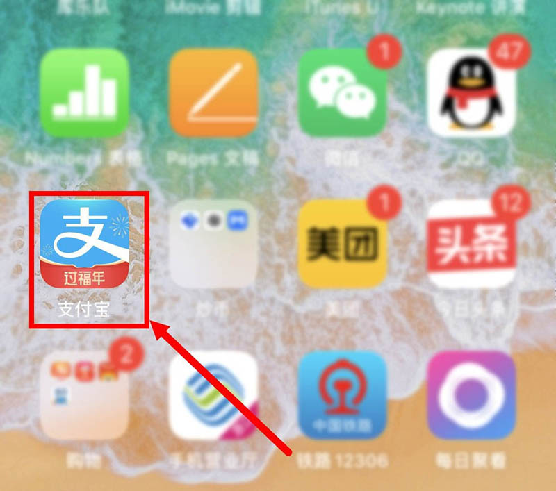 1、解锁手机,点击支付宝图标。