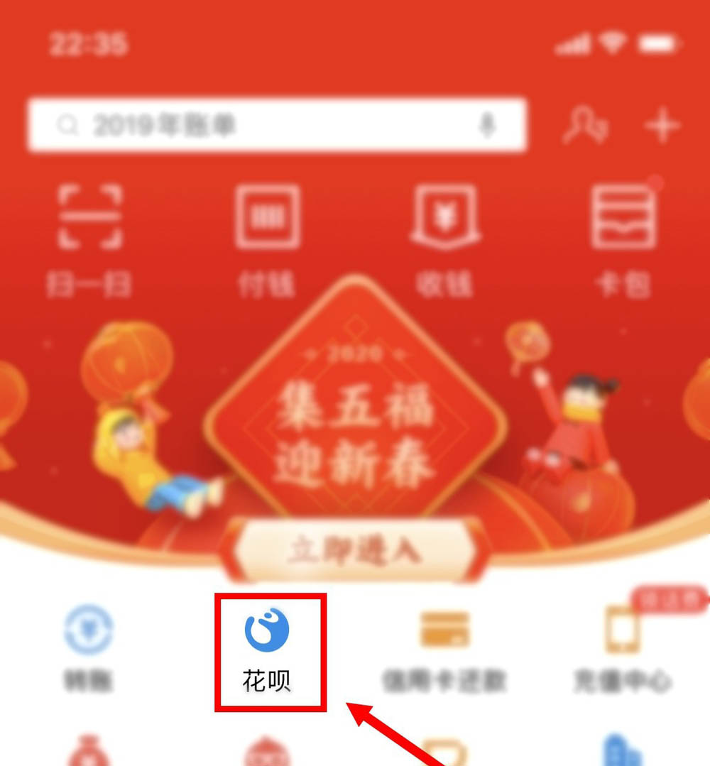 2、点击花呗图标。