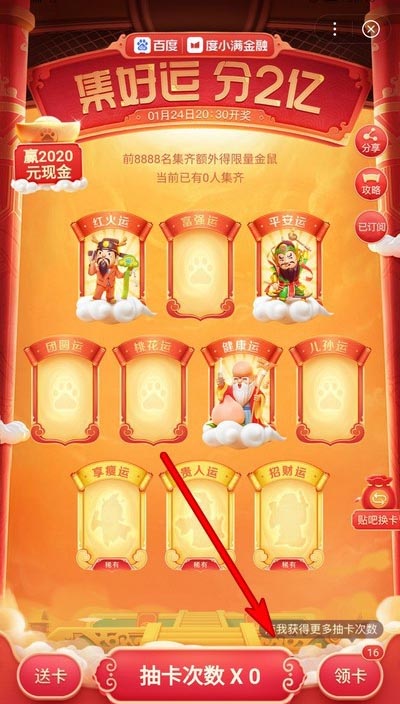 2020《百度》集好运分2亿活动增加抽卡次数方法
