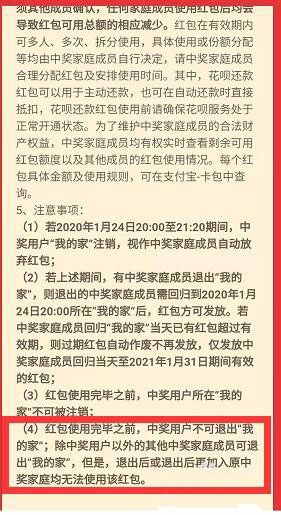 6、另外如果是在开奖之前退出了我的家,那依旧是需要在开奖之前重新进入的。另外如果自己进入的时候,已经发的红包有的过期了,那么自己只能用加入以后到21年1月31日之前的红包可以了。
