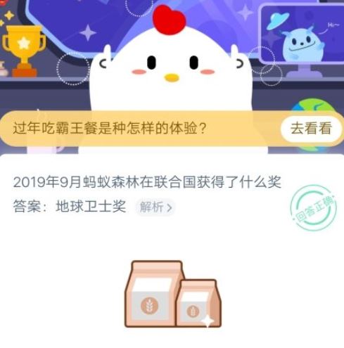 以上便是脚本之家小编为大家分享的"2019年9月蚂蚁森林在联合国获得了什么奖 蚂蚁庄园1月16日答案"的全部内容,希望能够帮到你,脚本之家持续发布更多资讯,欢迎大家的关注。