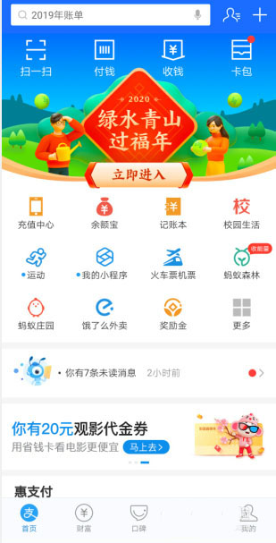 1、打开【支付宝】APP,进入首页,建议将支付宝更新到最新版本。