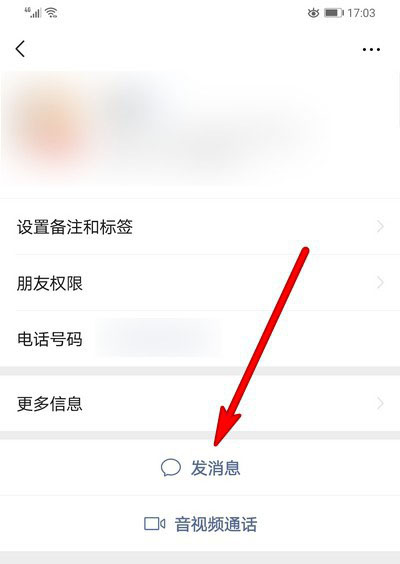 3、点击发消息选项。