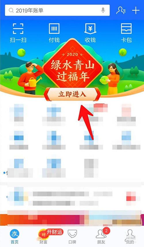 1、打开手机支付宝,点击集五福迎新春进入集卡活动!
