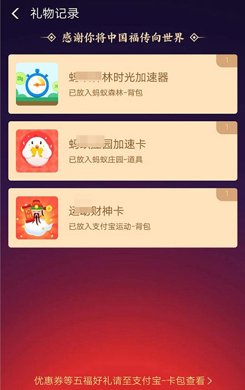 以上就是支付宝福满全球查看自己助力得到的礼物的技巧,希望大家喜欢,请继续关注脚本之家。