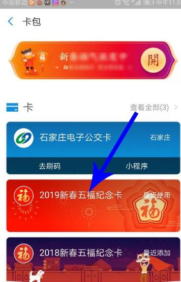 3.然后点击2019新春五福纪念卡。