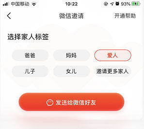 4、这里举例用微信邀请进行开通,点击之后会进入到微信邀请界面,可以选择一个标签,然后发送给微信好友。