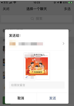 6、点击好友后会弹出一个发送确认窗口,确认发送后该好友同意开通就加入了家庭号。