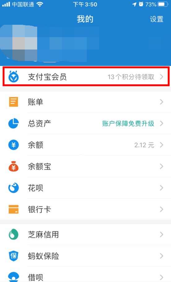 1、在支付宝APP中点击右下角“我的”,并点击最上方“支付宝会员”即可进入会员页面,如图:
