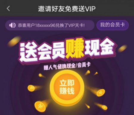 2、同时软件还支持邀请人赚钱,用户点击上图的送会员赚钱就能开始赚钱了,具体的规则也有详细的介绍,把这样一款软件推荐给身边的人,既能自己获取收益,还能帮助别人一起领取会员看视频,还能赚钱,何乐而不为呢?