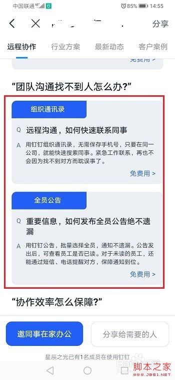 第四步团队沟通可以通过组织通讯录,全员公告方式等进行找人,如下图所示: