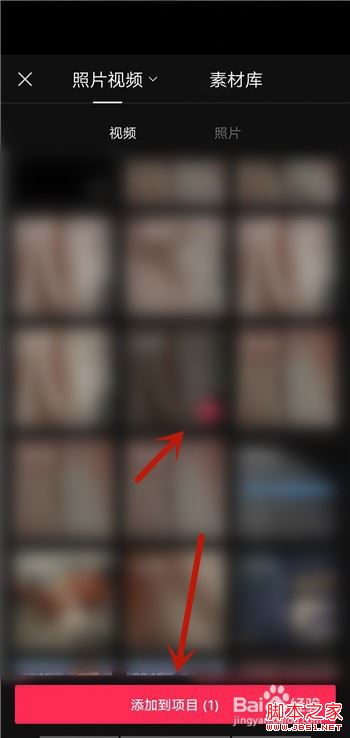 然后在里面选择一个视频,点击【添加到项目】按钮。