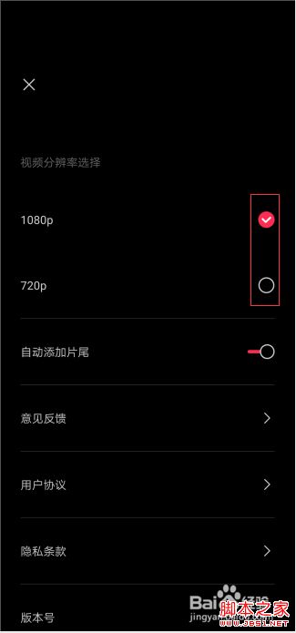 然后进入设置页面,可以看到右侧有视频清晰度的设置,调整为1080p,导出的视频清晰度即为高清。
