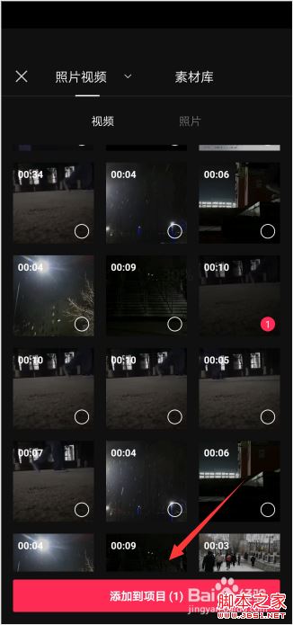 接下来点击开始创作后,进入视频文件页面,选择一个要制作的视频,选择完成后,点击添加到项目。