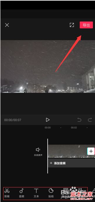 最后添加完视频项目以后,可以在下方功能栏目中进行视频的剪辑,特效的调整,随后点击导出。