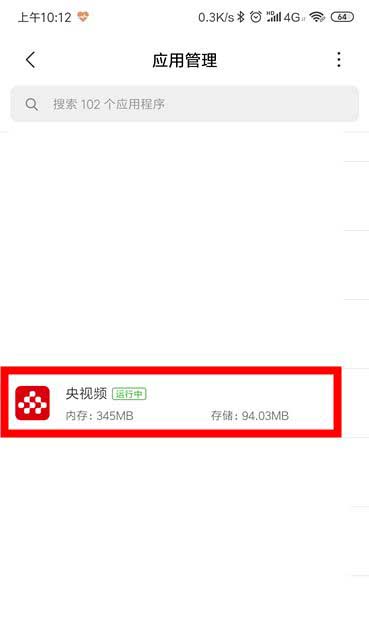 在应用管理的界面,找到央视频,点击进入。