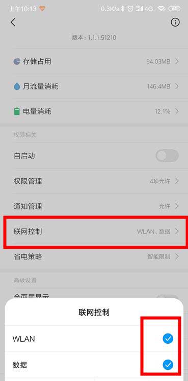 在央视频目录下,找到联网控制,看数据与WLAN控制是否已经开启,请确认在开启状态。