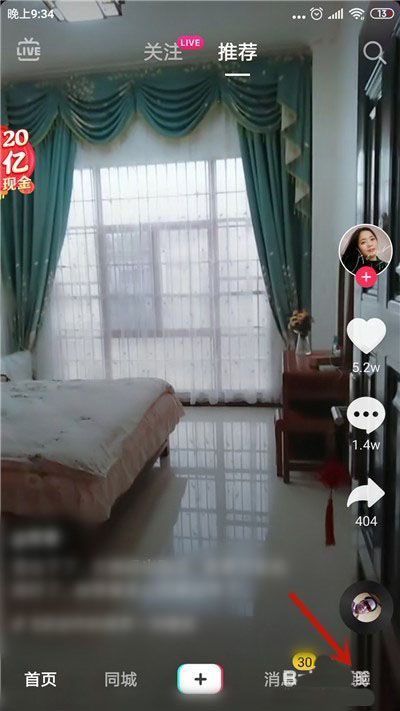 1、进入抖音主界面,点击右下角的【我】选项。