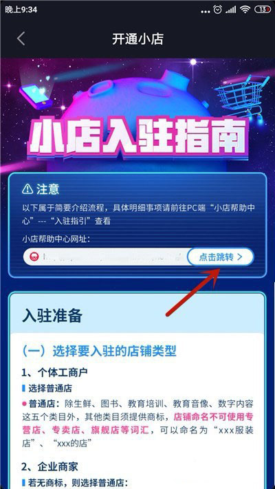 3、然后找到【开通小店】选项并点击。