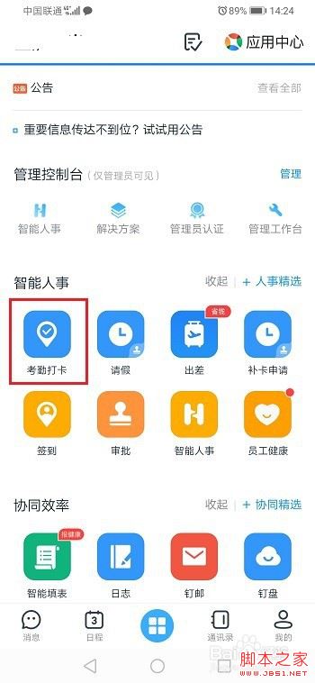 第一步手机上打开钉钉,点击考勤打卡,如下图所示:
