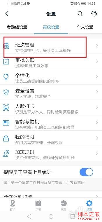 第三步进去高级设置界面,点击班次管理,如下图所示: