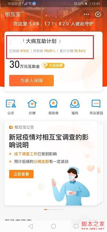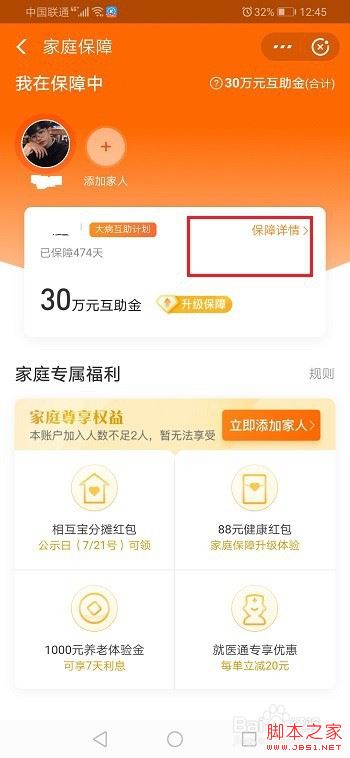 第四步进去大病互助计划界面之后,点击保障详情,如下图所示: