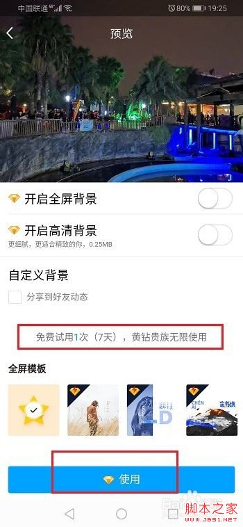 第四步选择封面背景之后,点击使用,需要注意的是每7天可以免费设置一次封面背景,如下图所示: