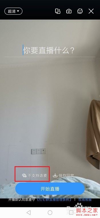 第三步点击不支持连麦,就切换成了支持连麦,然后点击开始直播,如下图所示: