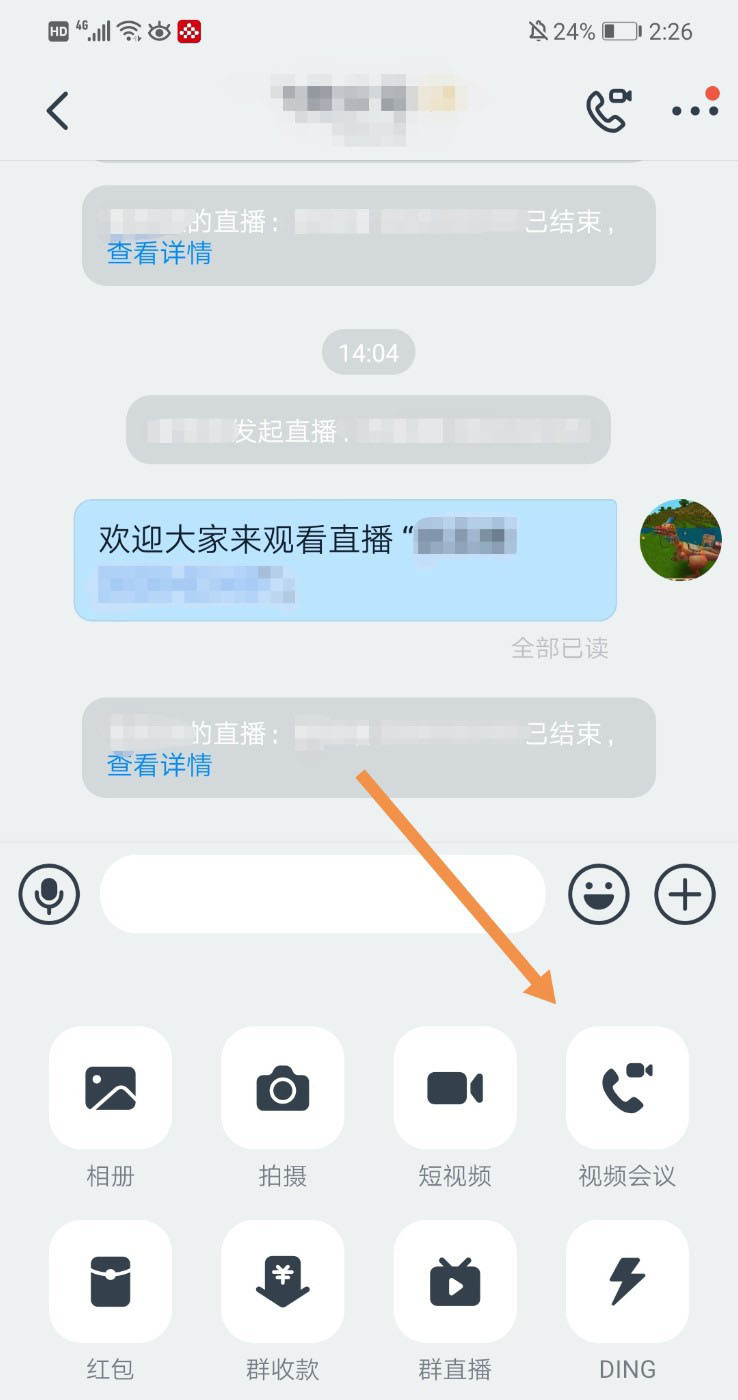 1、打开钉钉群,点击界面右下角的“+”。