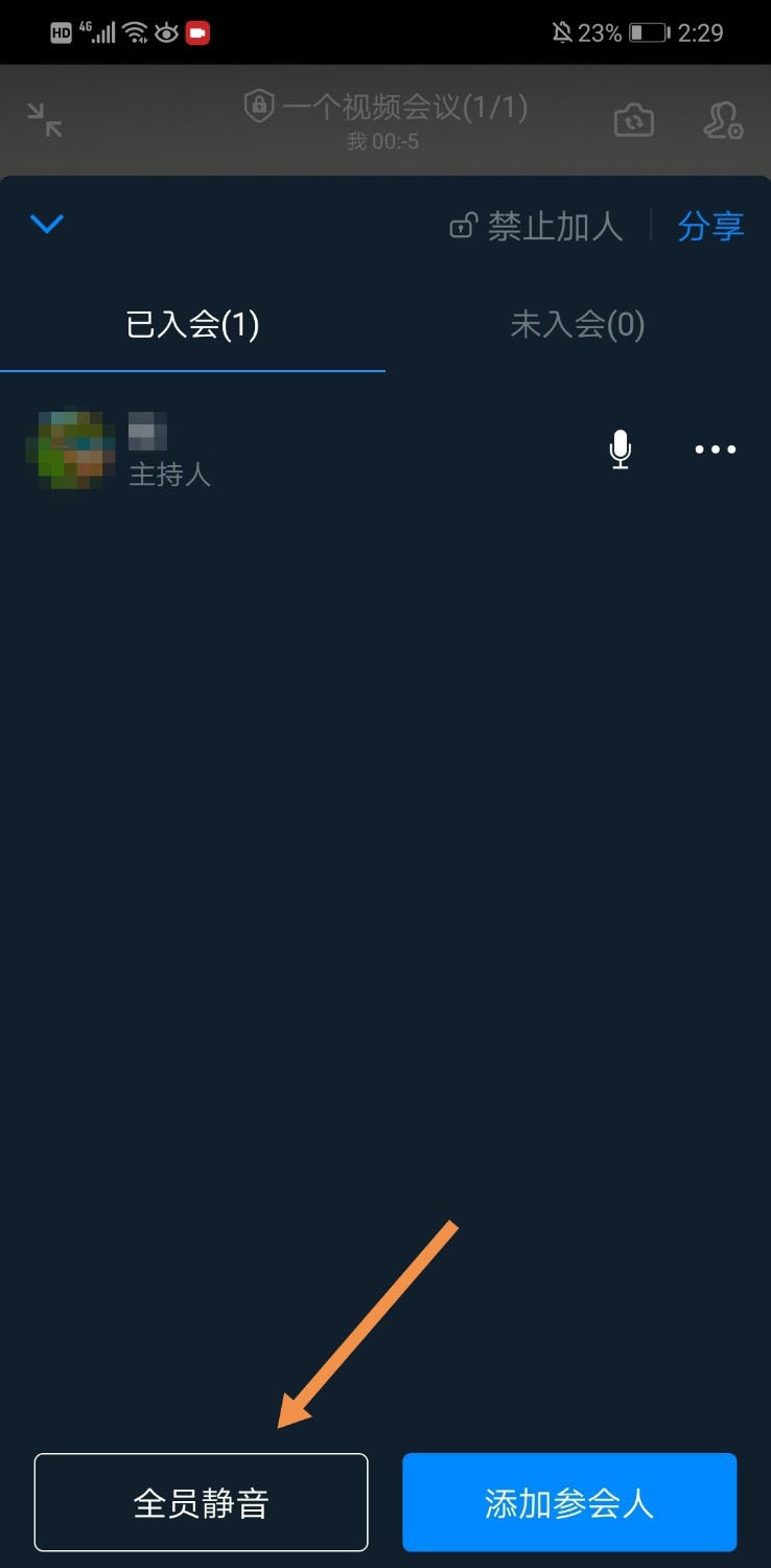 4、点击“全员静音”即可。