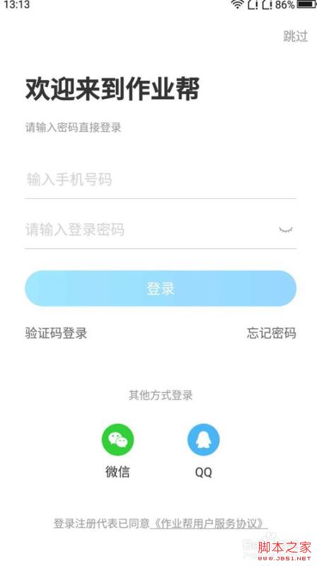 打开作业帮,进行登录,没有账号,可进行注册