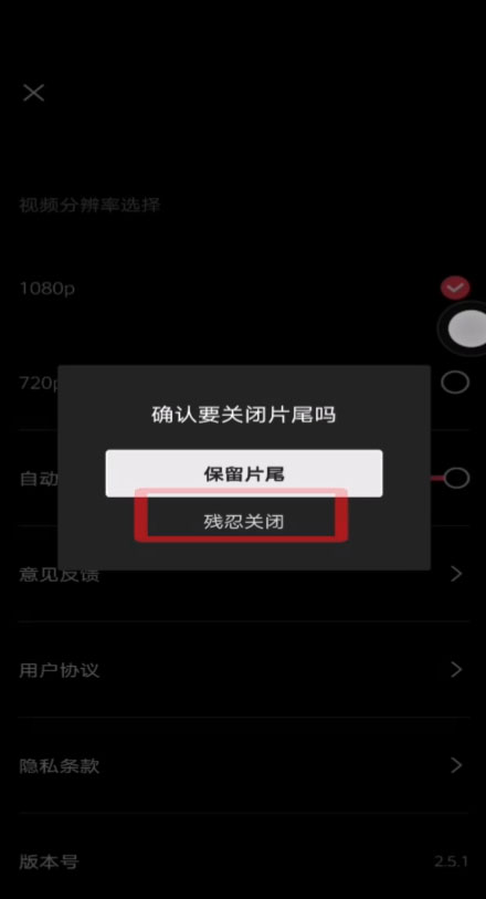 3、关闭“自动添加片尾”。