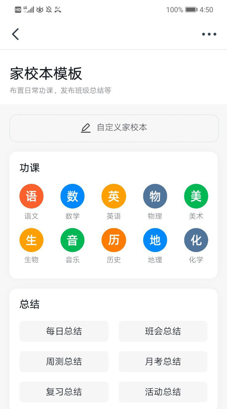 5、这里有很多家校本模板,我们也可以自定义一个家校本的模板。