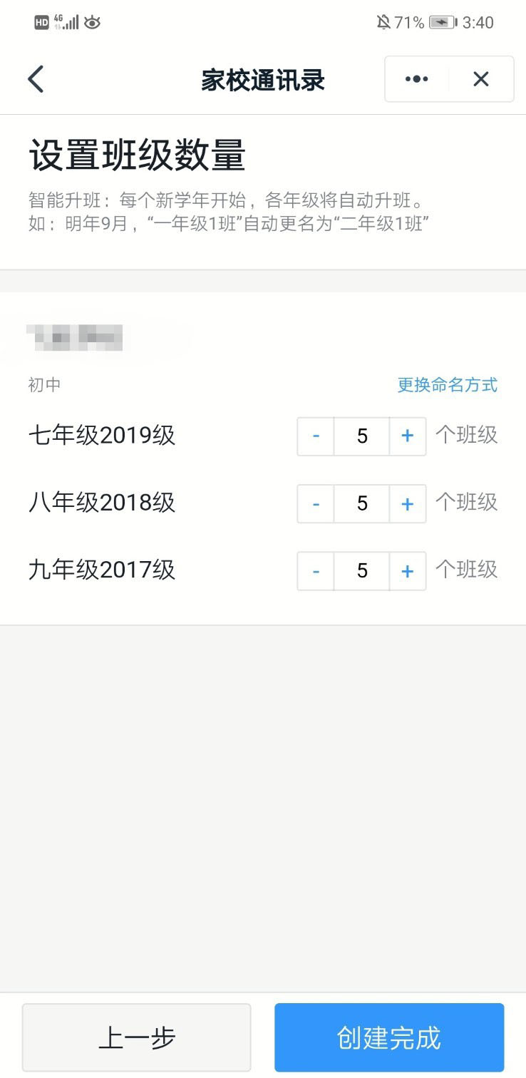 6、再设置班级数量,点击“创建完成”。