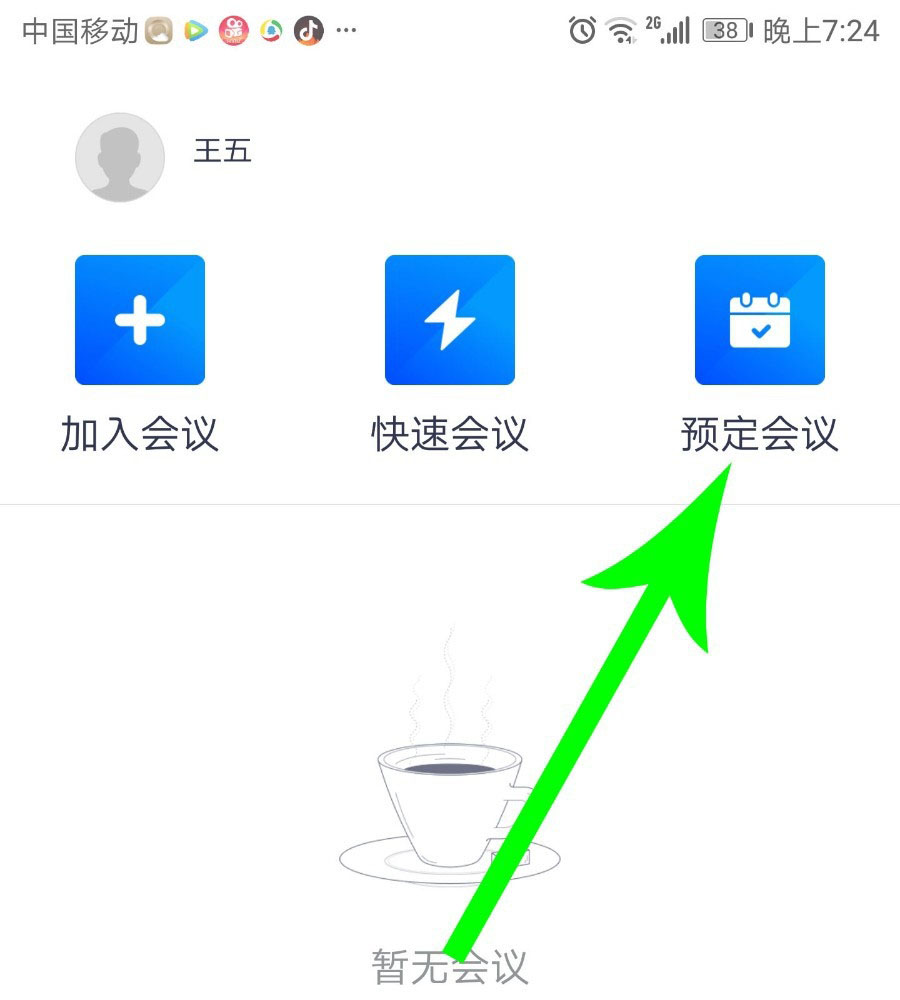 2、打开腾讯会议首页,然后点击“预定会议”。
