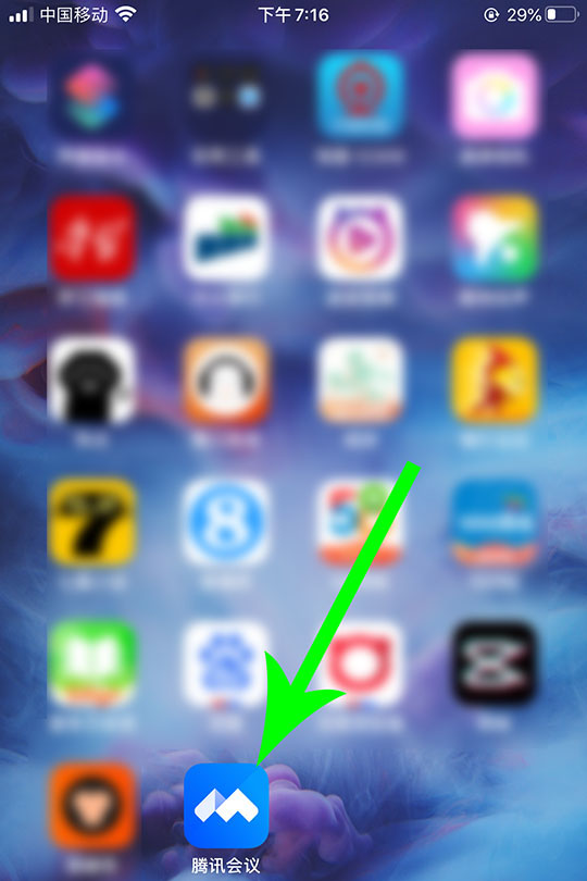 1、打开手机桌面,然后点击“腾讯会议”图标。
