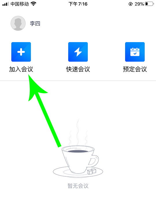 2、打开腾讯会议首页,然后点击“加入会议”。