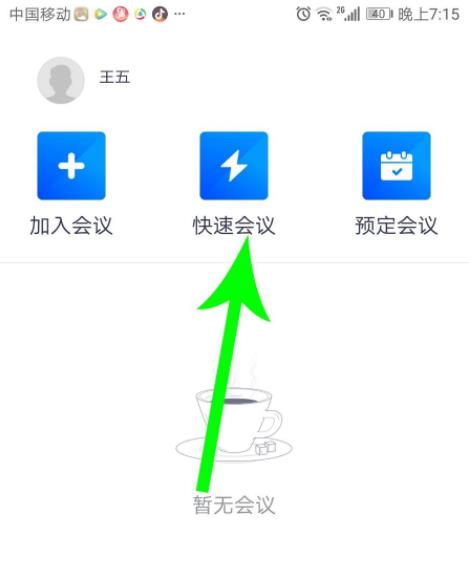 2、打开腾讯会议首页点击“快速会议”,然后就可以直接打开会议界面了,接下来要做的是将会议号告知参会者加入。