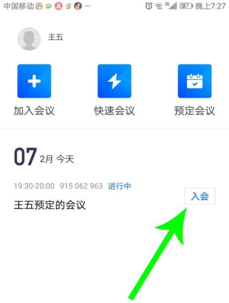 5、到开会时间后,会议发起者打开腾讯会议首页点击“入会”即可打开开会界面。