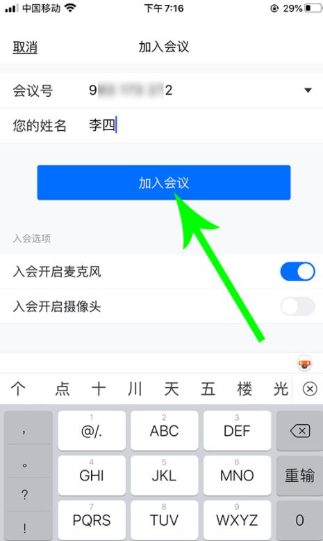 3、打开加入会议界面输入会议号,然后点击“加入会议”即可。