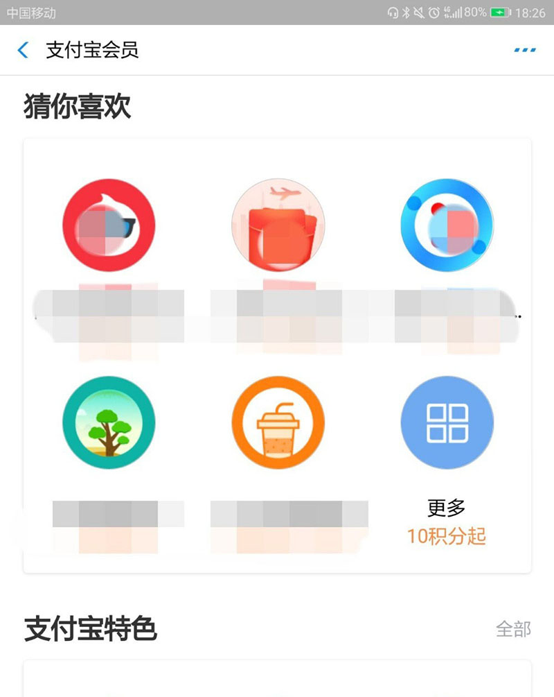 4、进入“支付宝会员”页面后,向下翻,点击“猜你喜欢”中的最后一项“更多”。