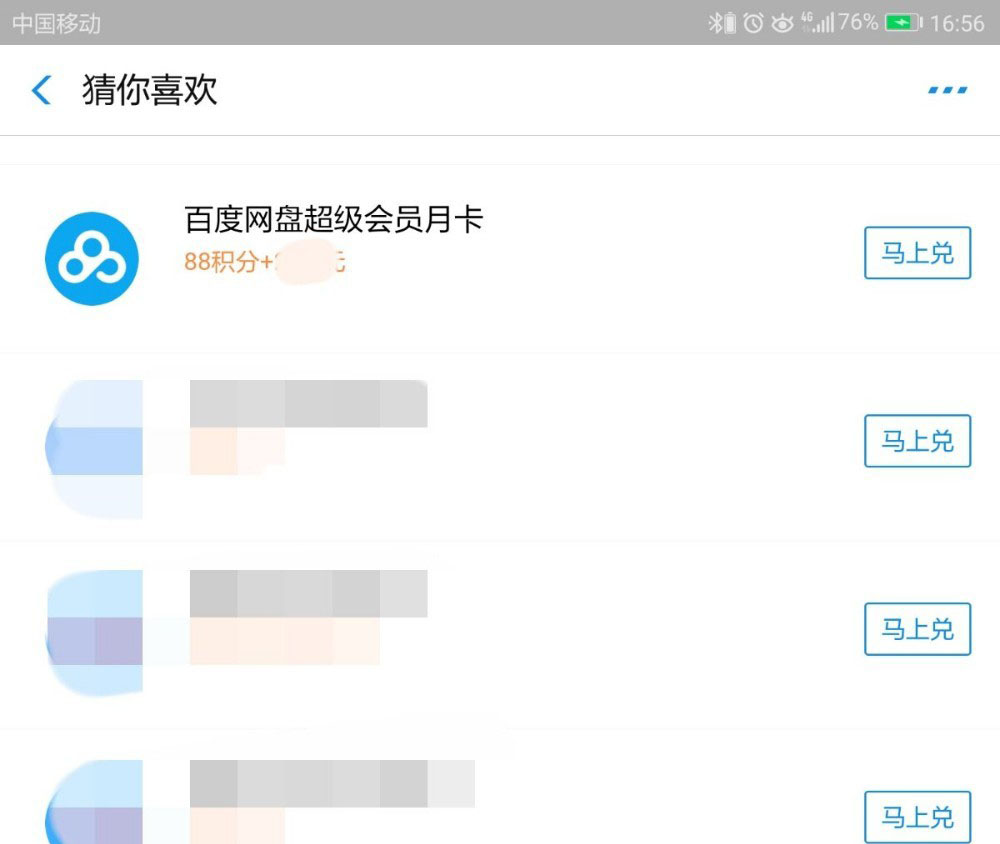 5、接着在新页面中,找到并点击“百度网盘超级会员月卡”后的“马上兑”。