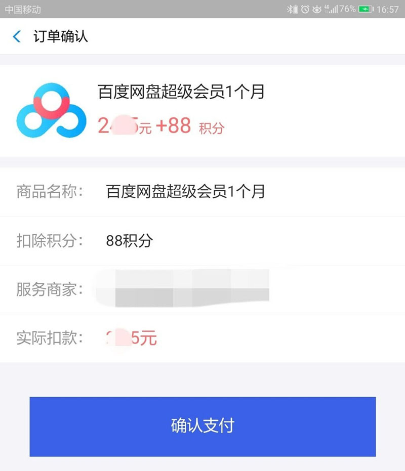 7、最后,在订单确认页面中,我们点击“确认支付”进行相应金额的支付即可。这样之后,百度网盘超级会员便兑换成功了。