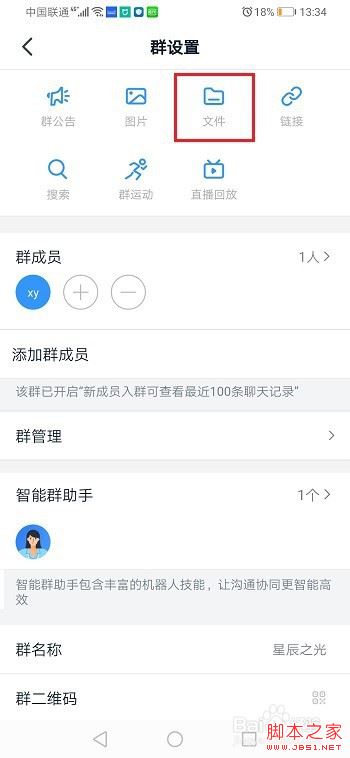 第一步打开钉钉,进去群聊,点击三点图标,选择文件,如下图所示: